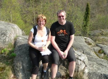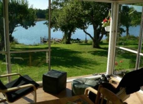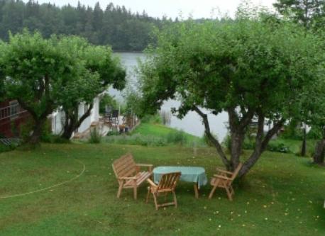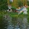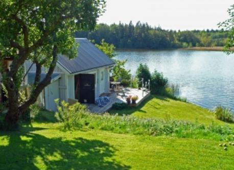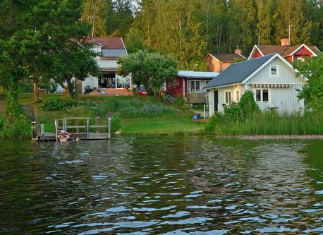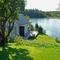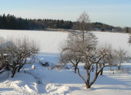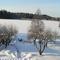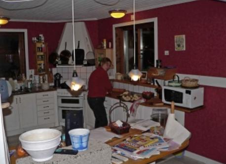 This is our house and our garden. The small house has a room for our guests. A picture of the view from our veranda. Our kitchen. This is me, Peter, and my wife Lena The last picture is our garden and the lake in the winter. We also have a rowing boat and a canoe for trips on the lake.