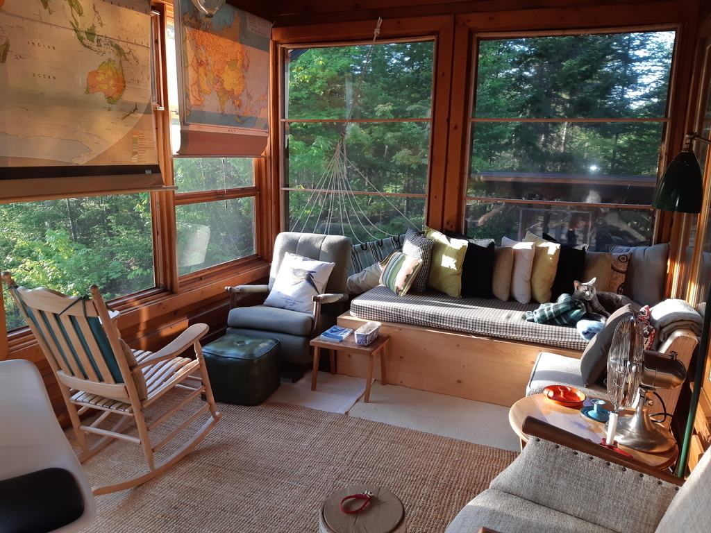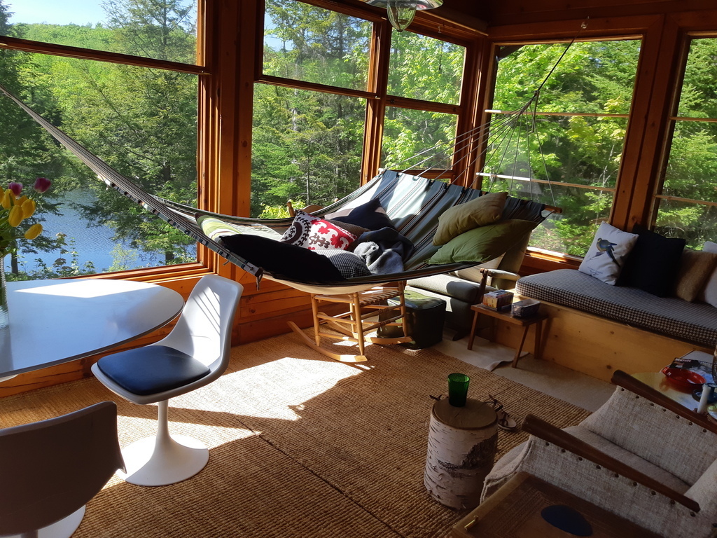 Ma cabane au Canada, bâtie en pleine forêt sur le bord d'un petit lac. Située à 8 km du village de St-Gérard-des-Laurentides, elle est située à mi-chemin entre Montréal et Québec (2 heures de voiture). Environnement calme, lits et divans très confortables et véranda moustiquaire aménagée, face au lac et à la forêt. Quai privé pour relaxation au soleil et baignade. Deux chambres à coucher et un divan-lit dans le salon à l'étage.