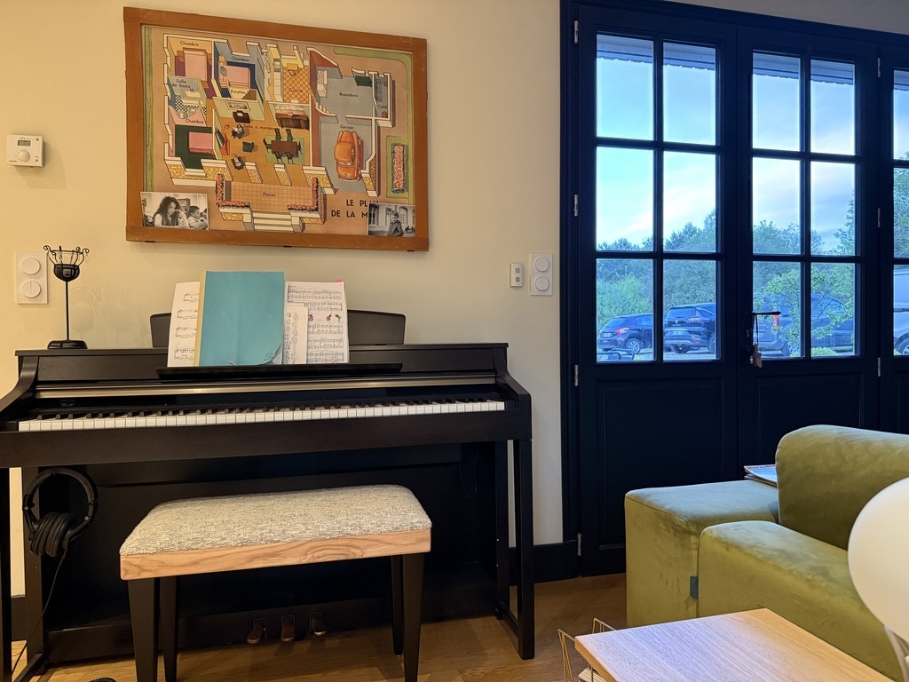 On the main floor we have a great place for reading, playing piano, watching movies in family, kids playing with all their toys, and 1 bedroom.