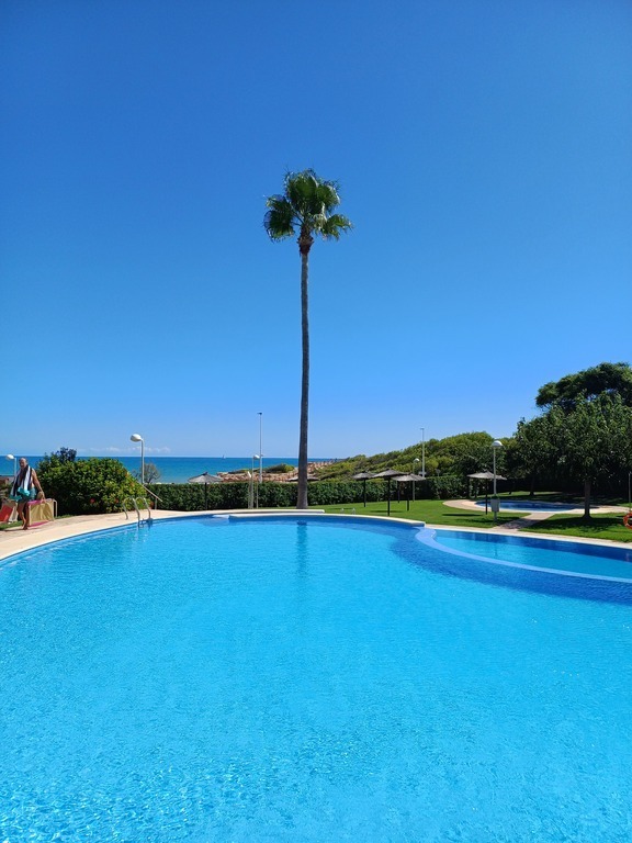Ours is a roomy two level flat on the Mediterranean coast, just some 5 metres from a sandy beach, called Playa del Moro in Alcoceber's Costa del Azahar. Our flat is inside a private resort with a superb garden with 2 swimming pools, one of them for small children.
