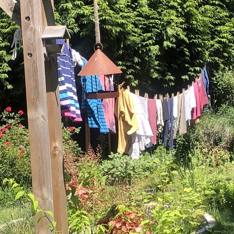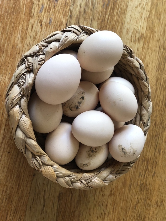 Im Garten gibt es Hannelore und Marie, zwei Hühner die uns jeden Tag Eier schenken.