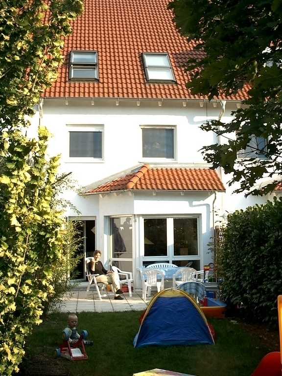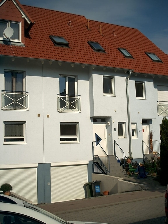 Unser Reihenhaus steht in einem klassischen Neubaugebiet in Walldorf (14.000 Einwohner) bei Heidelberg. Wir wohnen am Stadtrand in Richtung Bahnhof Wiesloch-Walldorf. Der Bahnhof ist zu Fuß oder mit dem Fahrrad schnell erreichbar. Nach Heidelberg braucht die S-Bahn 9 Minuten,